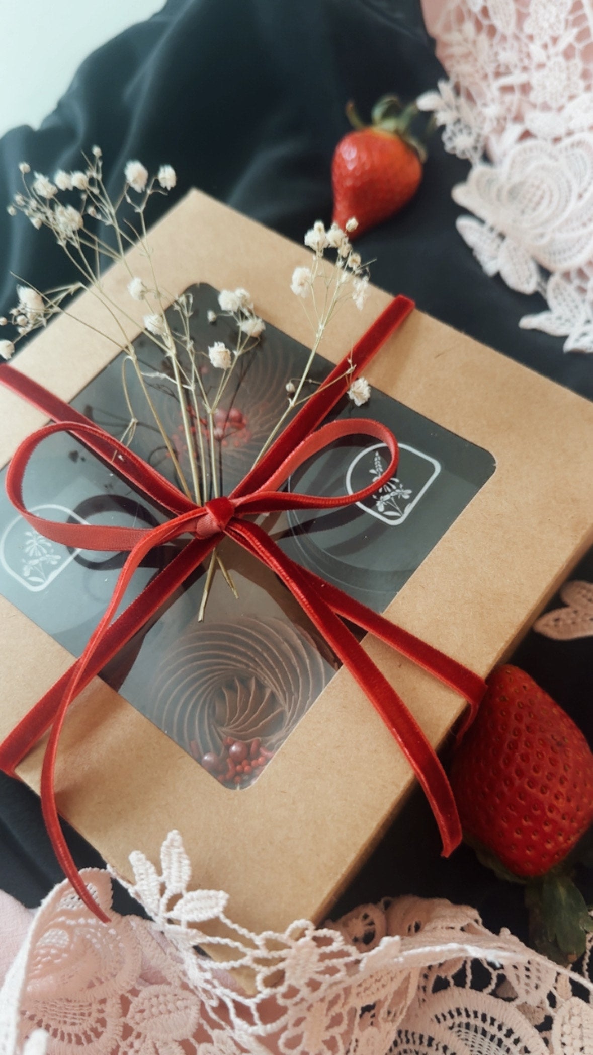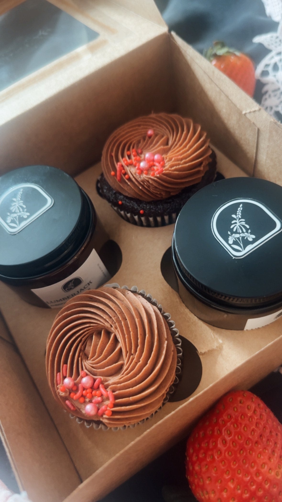 The Cozy Valentine Box celebrates Valentine’s Day in the coziest way. Each box includes two mini candles paired with two delicious strawberry-filled chocolate cupcakes from Sevelo Sweets. Beautifully packaged in a gift box adorned with red velvet ribbon and dried baby’s breath, this is the perfect treat to share with your Valentine!