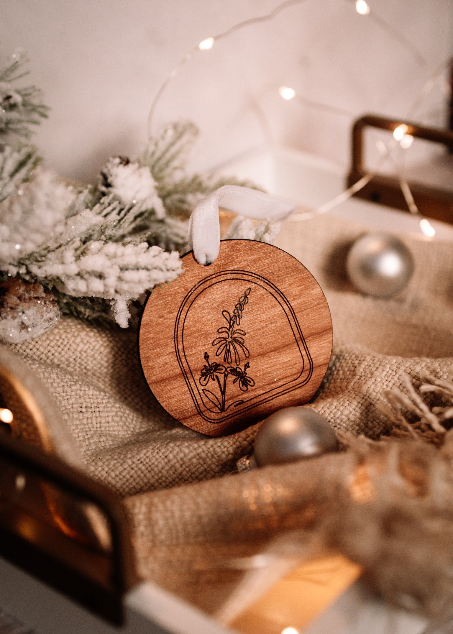 The perfect addition to your or a loved one’s tree this holiday season- these ornaments are lightweight, made of wood and have a velvet ribbon.
