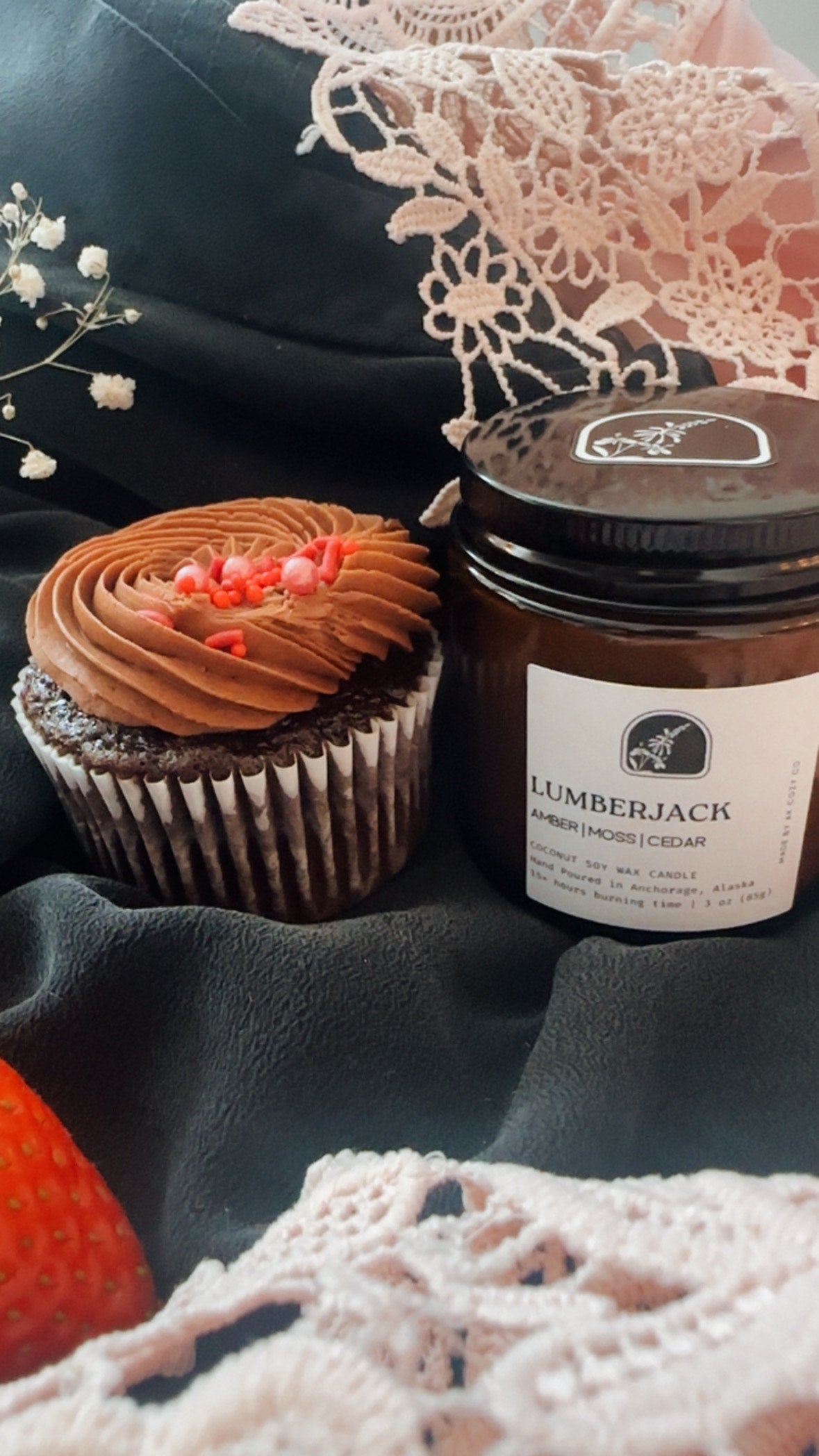 The Cozy Valentine Box celebrates Valentine’s Day in the coziest way. Each box includes two mini 3oz candles paired with two delicious strawberry-filled chocolate cupcakes from Sevelo Sweets.